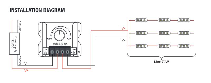 Applications: Perfect for dimming single-color LED lights in homes, offices, retail spaces, and signage, the Knob LED Dimmer provides easy and effective brightness control for any 12V or 24V LED lighting system.