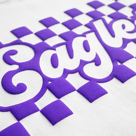 The Stahls Puff Purple vinyl is designed to work best for cutting simple shapes and large elements. It is not recommended for multi-layer applications, as the puffing process may flatten the effect permanently. To ensure the best results, apply the Puff last when used with other materials.