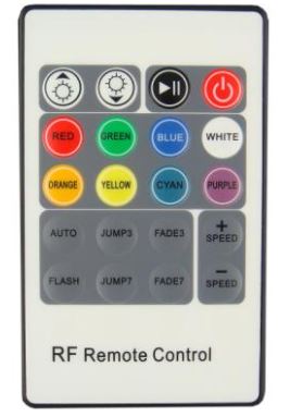 - RF 20-Key Remote Control: Wireless remote (RF frequency: 433.92MHz) allows you to control 14 modes, including 8 static colors and 6 dynamic effects
