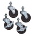 Increase the versatility of your Bulman products with the help of these Bulman 397 casters. Measuring 3 1/2" high, these casters will help you to easily move and transport your paper racks without breaking your back, whether you're using it in a school environment, for gift wrapping, or for product packaging. Made from polyrubber, all four casters swivel and all four have a 7/16" x 1 3/8" threaded stem. Two feature wheel brakes and two do not. Nuts are included.